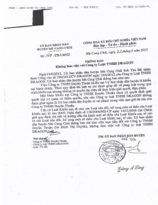 Trong công văn trả lời 2 lần của UBND huyện với công ty Duyên Thuận và Công ty Luật Dragon đều nại lý do không chấp nhận ủy quyền của Công ty Duyên Thuận với luật sư là Luật khiếu nại tố cáo 2005, quy định người khiếu nại tố cáo chỉ được nhờ luật sư tư vấn hỗ trợ pháp luật, chỉ ủy quyền trong một số trường hợp ốm đau già yếu và các lý do khách quan khác. Tuy nhiên, phần bồi thường sau khi có việc cưỡng chế sai luật của UBND huyện phải giải quyết theo Luật trách nhiệm bồi thường nhà nước năm 2009. Như vậy việc tham gia của luật sư Nguyễn Minh Long thuộc Văn Phòng Luật Sư Dragon – Đoàn Luật Sư Hà Nội trong trường hợp này là hoàn toàn đúng. Khi trong quá trình đàm phán thương lượng không đi tới thống nhất, UBND Huyện đưa ra đề xuất 50 triệu “hỗ trợ” cho Công ty Duyên Thuận đã không đồng ý với quan điểm của UBND Huyện vì thiệt hại xảy ra đối với Doanh nghiệp là quá lớn so với mức gọi là hỗ trợ từ sự việc này Công ty Duyên Thuận đã ủy quyền cho Luật sư trong việc tham gia đại diện để đàm phán trong quá trình giải quyết vụ việc khi quyền và lợi ích của mình bị xâm phạm thiệt hại.